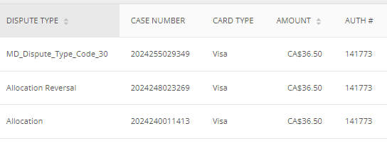 - Allocation Dispute: Visa new chargeback in the Allocation flow