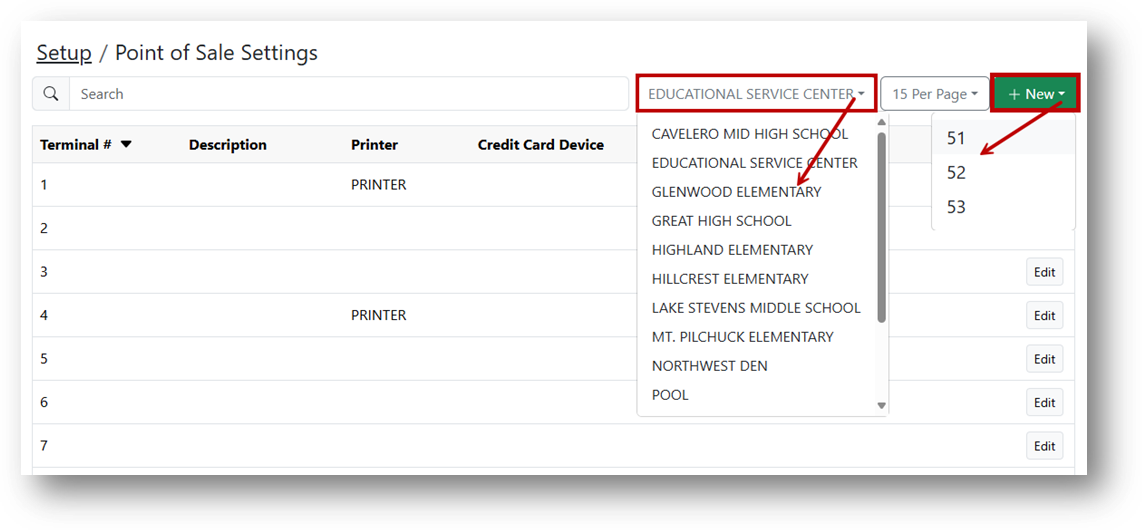 - Click + New to select the terminal you wish to begin creating Point of Sale settings for.