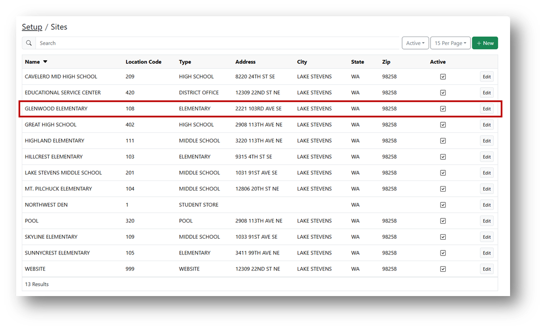 - Select the site you wish to add terminals to and click Edit.