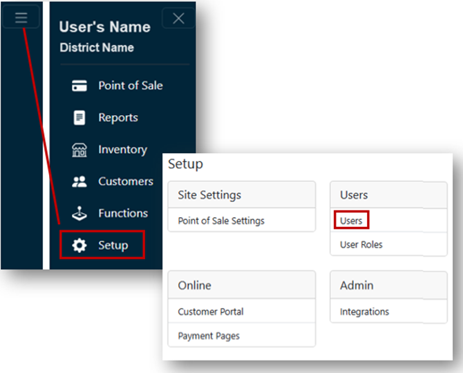 - Return to the Setup menu and click Users under the Users header.