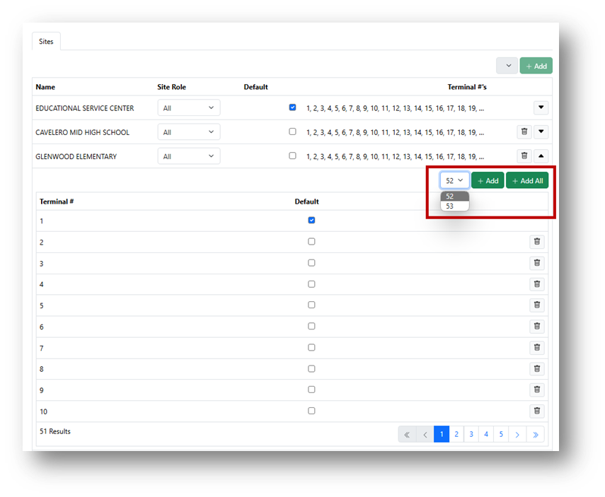 - Find the site you added terminals to and give yourself access to those terminals by selecting them from the dropdown or clicking + Add All.