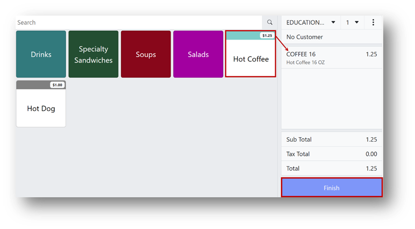 - Click the button for the item being sold (e.g., Hot Coffee).