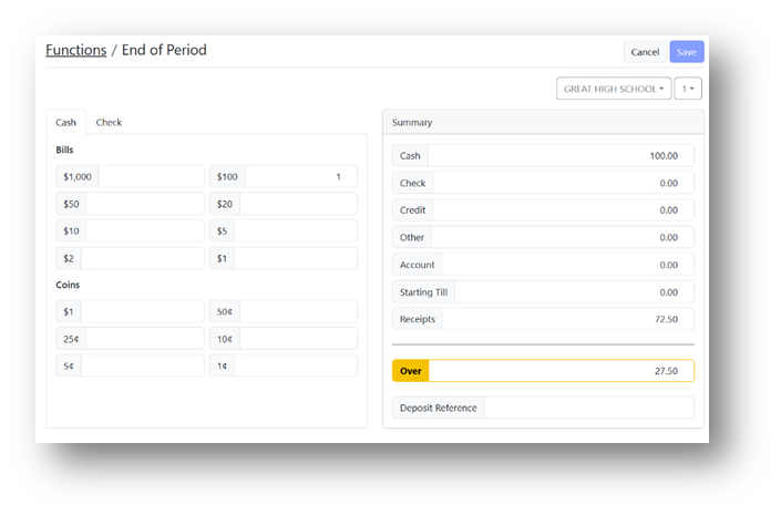 At the end of the shift, or when the cashier is finished, you must reconcile receipts with the tender.
