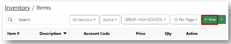 Note: You may add several price levels to your item. If you would like more than one level, click + New and repeat the steps to complete the additional line. Data Elements-Optional: