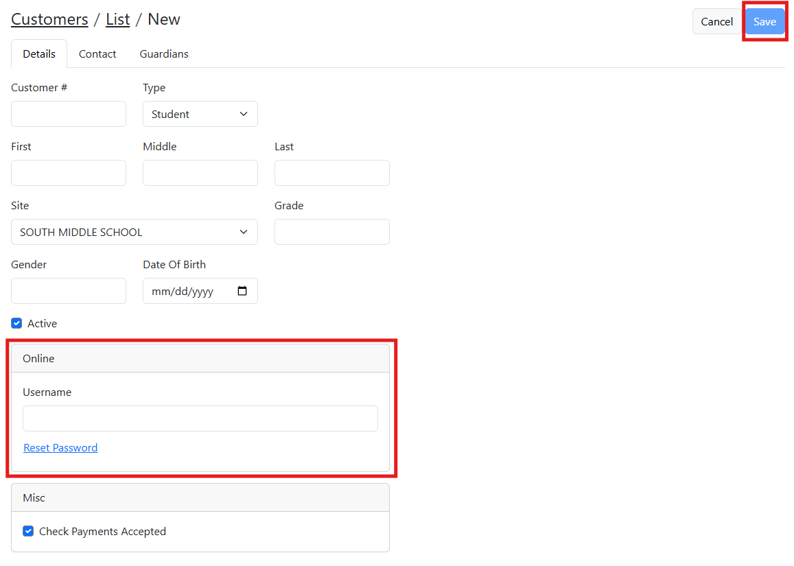- Share the temporary password with the parent/customer. Instruct them to log into the Customer Portal and change it immediately to a password of their choice